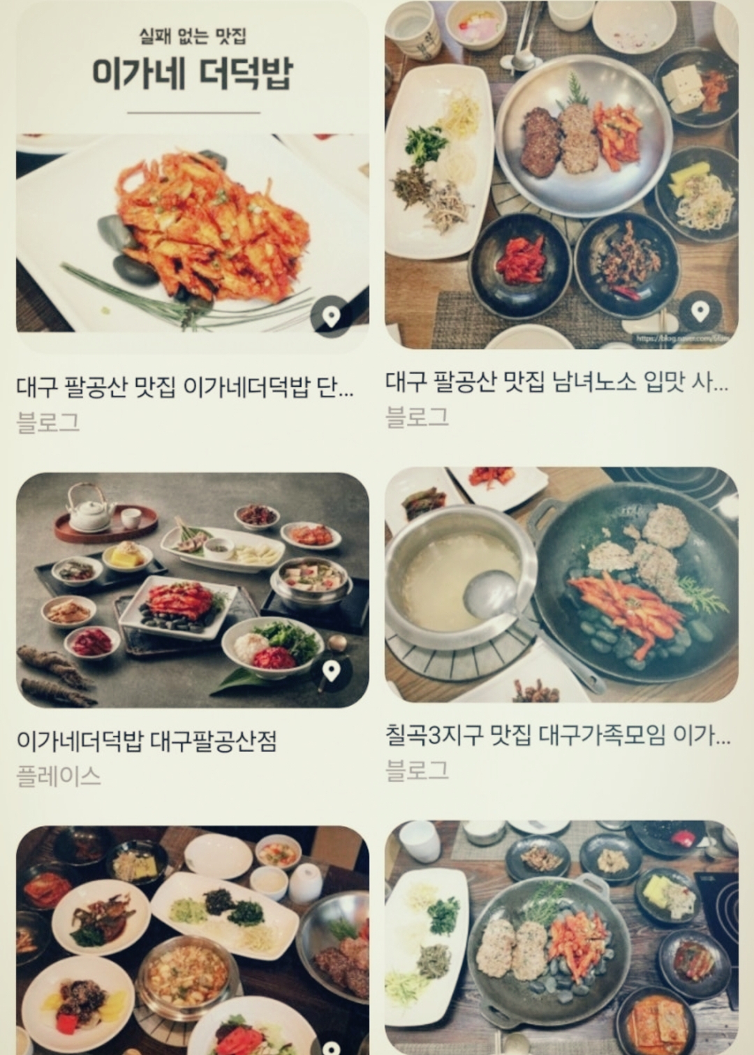 팔공산 자락에 위치해 있으며 룸식당으로 더덕요리를 다양하게 맛볼 수 있는 건강한 밥상 한상차림입니다. 가족모임이나 회식장소로 좋다고 하니 참고하시면 좋겠네요.
